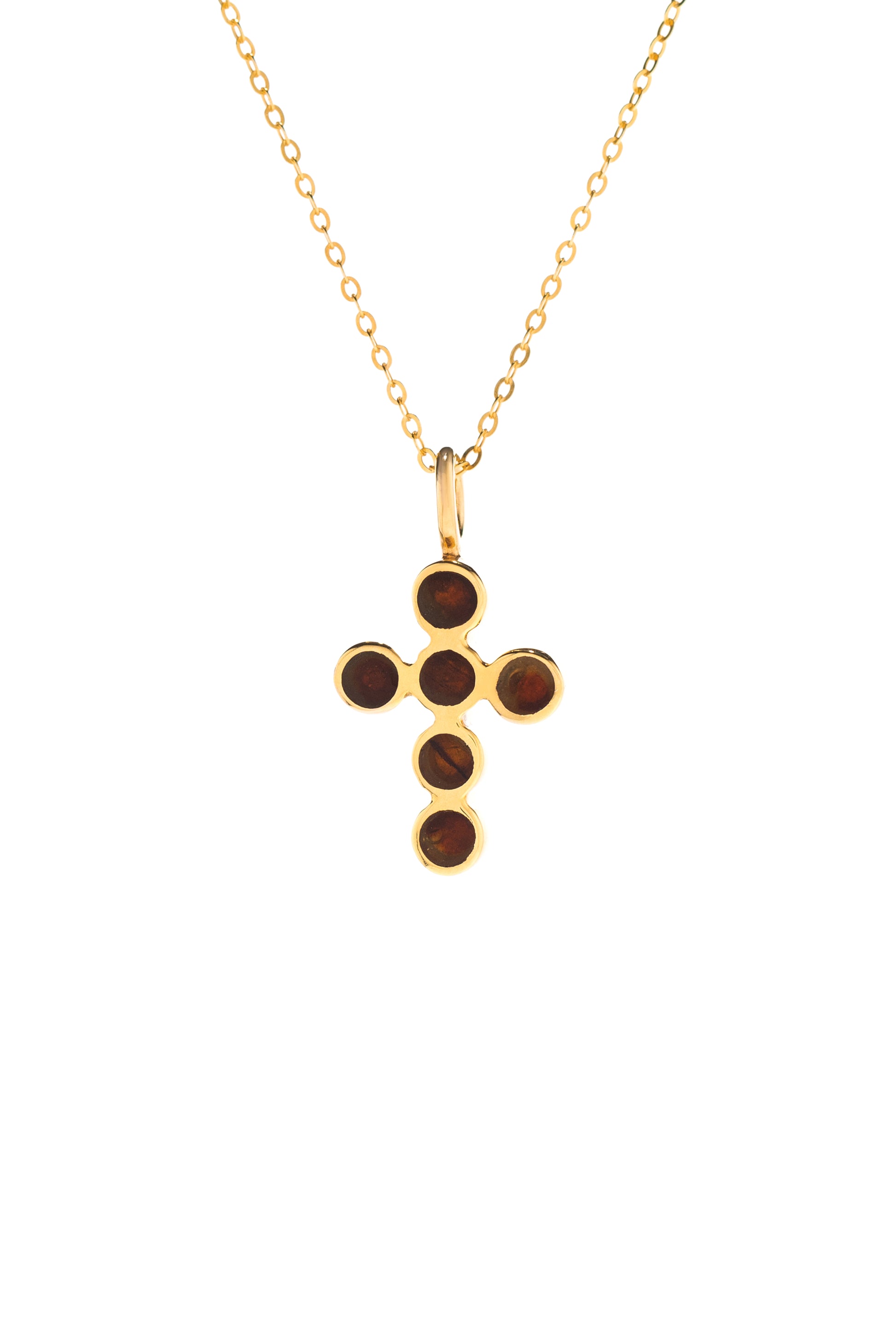 Cross pendant with precious stone details. Comes with chain.